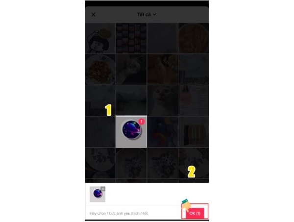 Bước 5: Màn hình sẽ hiển thị bộ sưu tập ảnh của bạn. Chọn một bức ảnh yêu thích để làm video và nhấn “OK”.