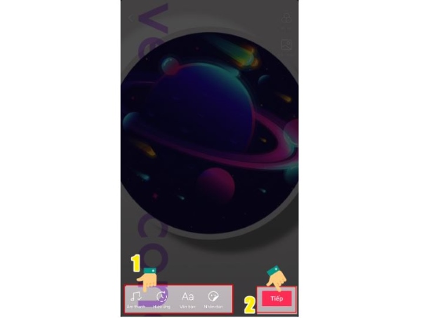 Bước 5: TikTok sẽ tạo một video demo cho bạn. Bạn có thể chỉnh sửa video bằng cách thêm nhãn dán, chọn nhạc nền, hoặc chèn text. Sau khi hoàn thành, nhấn “Tiếp”.