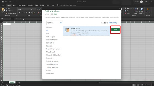 Trong đó, QR4Office là một Add-ins phổ biến và dễ sử dụng để tạo mã QR trong Excel. Add-ins này miễn phí và tương thích với tất cả các phiên bản Excel, giúp bạn dễ dàng tạo mã QR cho dữ liệu của mình mà không cần cài đặt phần mềm hay công cụ hỗ trợ khác.