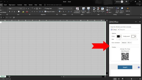 Sau khi đã cài đặt QR4Office thành công, bạn có thể thực hiện theo các bước sau để tạo mã QR trong Excel: