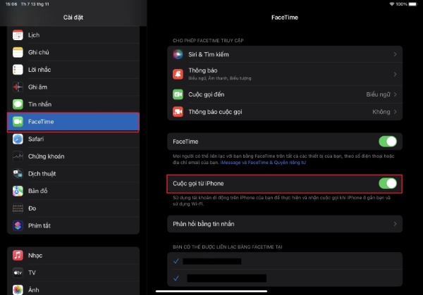 Cũng giống như trên điện thoại iPhone, người dùng truy cập vào phần Cài đặt > chọn vào mục FaceTime > chọn Tắt kích hoạt mục Cuộc gọi từ iPhone là xong.