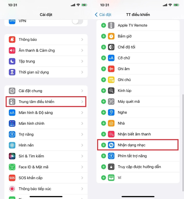 Tính năng này hoạt động nhờ vào việc iPhone và iPad đã tích hợp dịch vụ tìm tên bài hát Shazam mà Apple mua lại năm 2018. Với Shazam, bạn chỉ cần 1 cú chạm là đã có thể nhận diện được bài hát một cách chính xác. Việc đầu tiên bạn cần làm là truy cập vào Trung tâm điều khiển trong phần Cài đặt. Sau đó thêm phím tắt Shazam vào là đã có thể bắt đầu sử dụng được tính năng này.