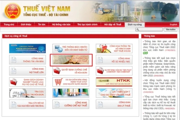 Cách 1: Tra cứu tại Cổng thông tin điện tử của Tổng cục thuế
