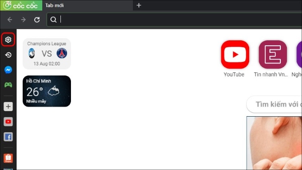 Bước 1: Mở ứng dụng Cốc Cốc và chọn ấn vào biểu tượng Cài đặt có hình bánh răng ở danh sách menu bên trái của giao diện hiển thị của trang web.