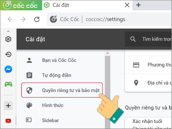 Chặn quảng cáo trên Cốc Cốc trên nền tảng máy tính