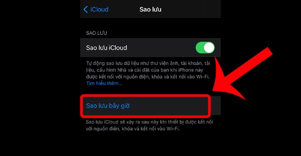 Bước 3: Nhấn vào mục Sao lưu iCloud > chọn Sao lưu bây giờ.