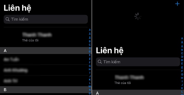 Bước 5: Mở ứng dụng Danh bạ trên iPhone mới lên và vuốt xuống để làm mới. Sau một vài phút, toàn bộ danh bạ từ iPhone cũ sẽ xuất hiện trên iPhone mới.