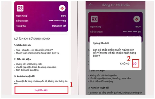 Bước 3: Bấm vào mục Hủy liên kết > Xác nhận hủy liên kết ngân hàng trên ví điện tử MoMo cũ