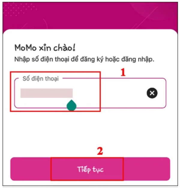 Bước 2: Nhập số điện thoại mà bạn đã thực hiện đăng ký tài khoản ví điện tử MoMo mới.
