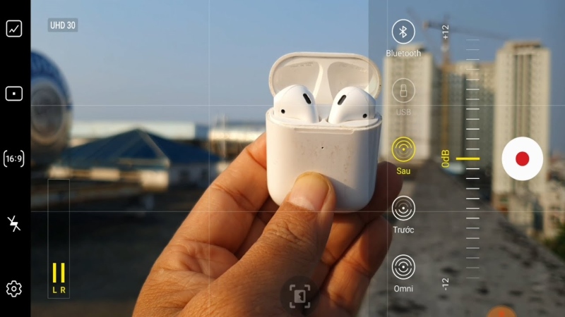 Bước 2: Mở ứng dụng Camera trên điện thoại và tiến hành quay video. Song song với đó bạn có thể thu âm thanh tương ứng qua tai nghe.