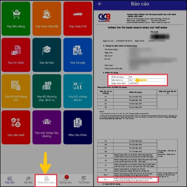 Mở vào mục Khai thác báo cáo để kiểm tra về tình trạng nợ xấu của mình