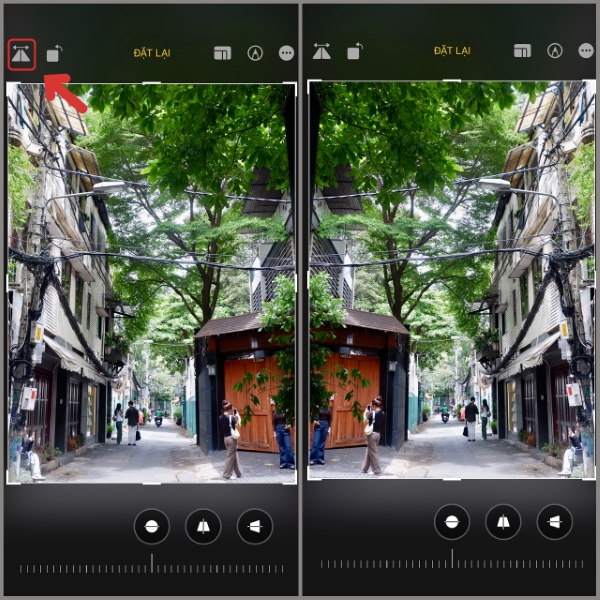 Bạn nhấn biểu tượng 2 hình tam giác để lật tấm hình theo chiều ngang.