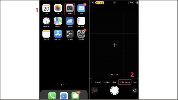 Bước 1: Mở camera trên iPhone lên > chọn vào chế độ chụp Chân dung (Portrait Mode).