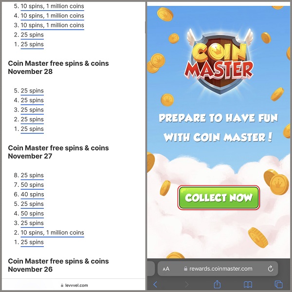 Bước 2: Nhấn “COLLECT NOW”, sau đó mở trò chơi Coin Master và nhận thưởng.