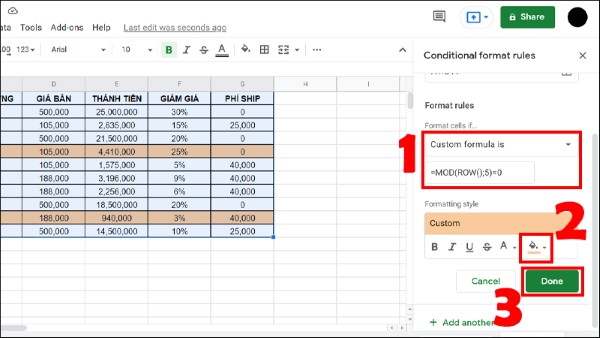 Tô màu xen kẽ trong Google Sheets bằng công thức
