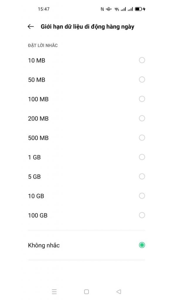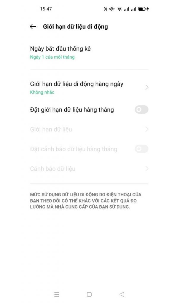 Trong hướng dẫn sử dụng OPPO Reno5 5G, chúng tôi cũng sẽ chỉ bạn giới hạn dữ liệu di động. Vào “Cài đặt” -> chọn “Thẻ SIM và dữ liệu di động” -> chọn “Sử dụng dữ liệu” -> chọn “Giới hạn dữ liệu di động” -> chọn mục “Giới hạn dữ liệu di động hàng ngày”.