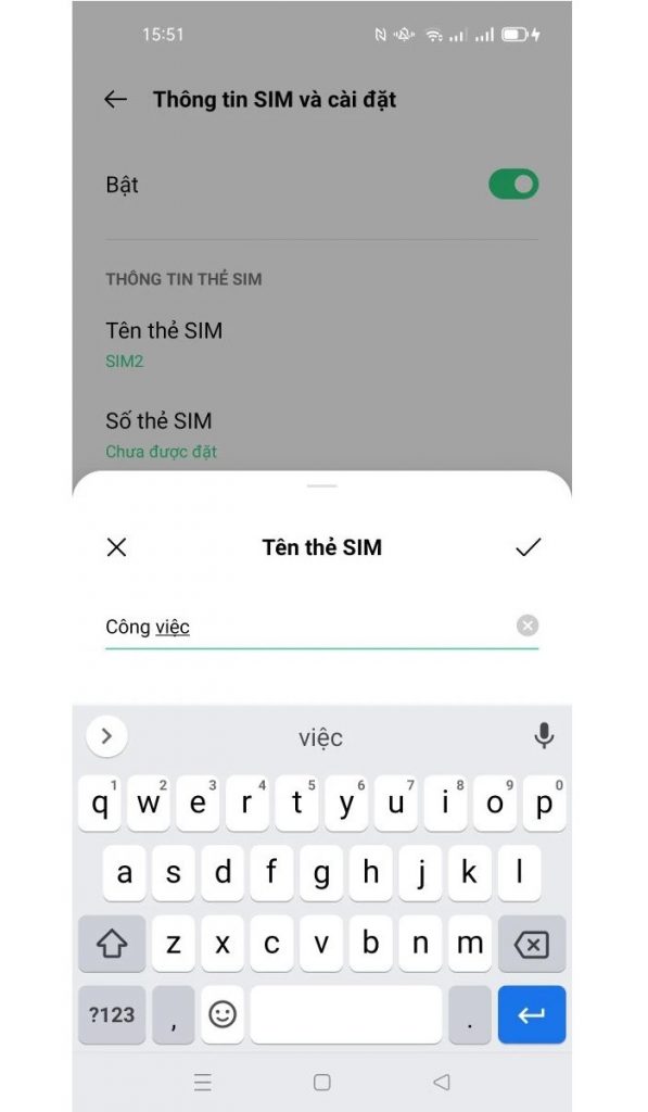 Việc đổi tên sim sẽ đem lại rất nhiều thuận tiện khi liên lạc. Để đổi tên bạn chỉ cần vào “Cài đặt” -> chọn “Thẻ SIM và dữ liệu di động” -> Chọn SIM muốn đổi tên -> Chọn “Tên thẻ SIM” rồi đặt lại tên mới.