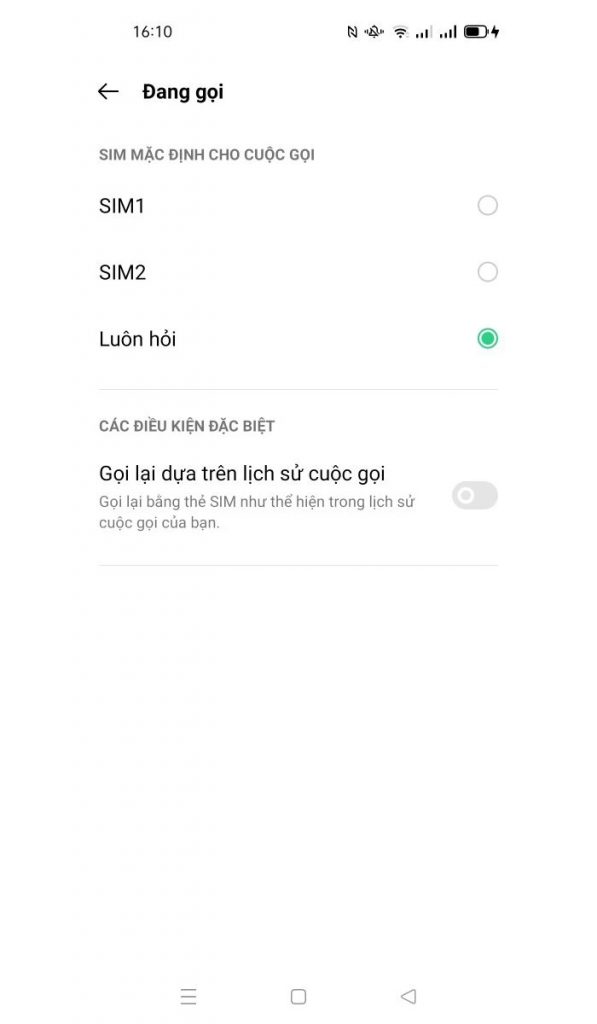 Ngoài ra, bạn cũng có thể chọn gọi lại dựa vào lịch sử cuộc gọi. Ví dụ, nếu bạn nhận được một cuộc gọi từ SIM1 thì khi bấm gọi sẽ tự động nhận SIM1 và không phải chọn lại SIM để gọi.