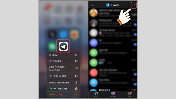 Bước 1: Mở ứng dụng Telegram >> Chọn biểu tượng tin nhắn ở góc phải trên cùng.