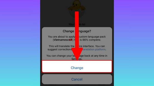 Bước 2: Sau khi truy cập, người dùng sẽ nhận được thông báo “Change Language?”. Lúc này bạn hãy nhấn vào nút “Change” để cài đặt ngôn ngữ tiếng Việt.