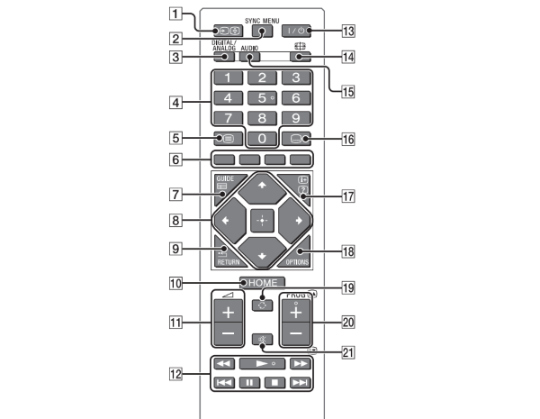Ở chế độ văn bản, giữ trang hiện tại. - SYNC MENU: Nhấn để hiển thị Menu BRAVIA Sync, sau đó chọn thiết bị HDMI/MHL được kết nối từ nguồn.