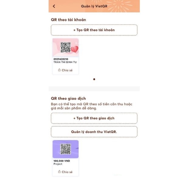 - Mã QR gắn với một loại giao dịch dành cho các khách hàng cá nhân.