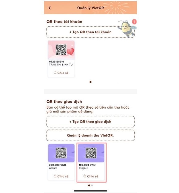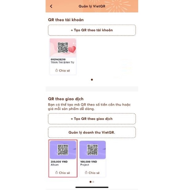 - Mã QR gắn với số tài khoản dành cho khách hàng cá nhân.