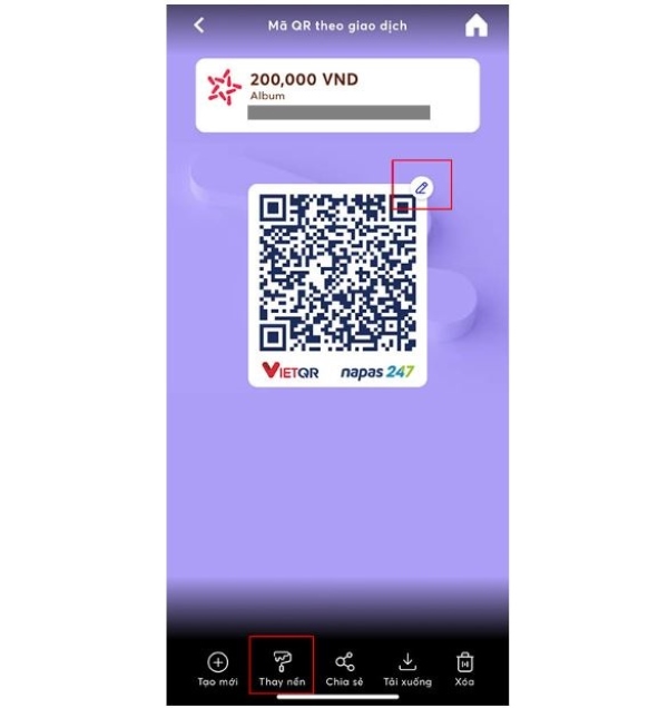 Bước 2: Chọn tính năng Thay nền hoặc biểu tượng bút vẽ ở góc phải bên trên mã QR để chỉnh sửa nền của mã QR.