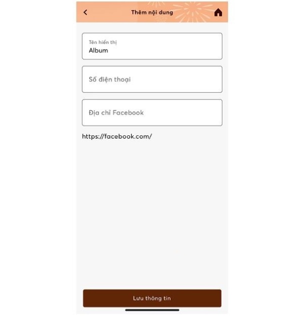 Bước 6: Bạn có thể chỉnh sửa Tên hiển thị và thêm số điện thoại, địa chỉ Facebook.