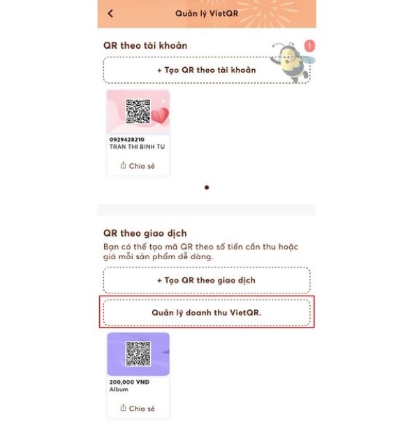 Bước 1: Chọn Quản lý doanh thu VietQR.