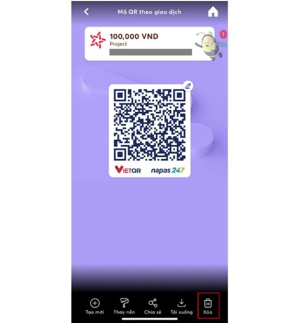 Bước 2: Nhấn vào biểu tượng thùng rác để xóa mã.