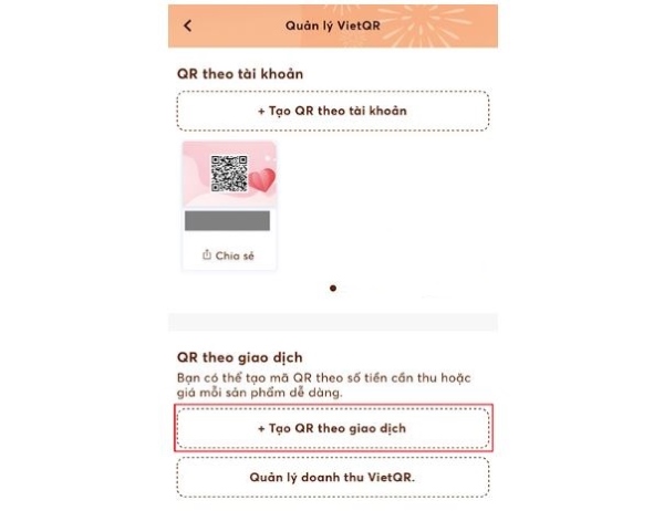 Bước 3: Chọn vào Tạo mã QR theo mã giao dịch.