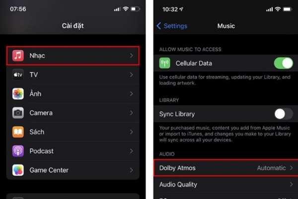 Bước 1: Trước hết, người dùng mở vào Cài đặt > chọn vào mục Nhạc. Tại giao diện này, bạn chọn tiếp vào mục Dolby Atmos.