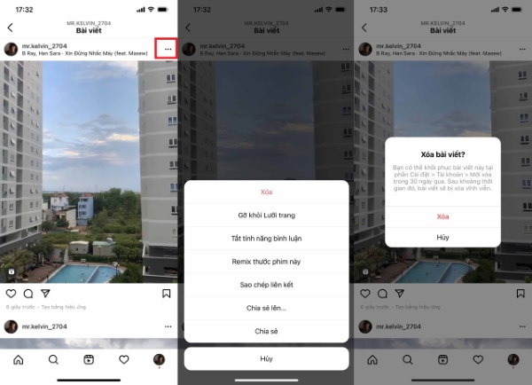 Bước 7: Video Reels được đăng tải lên Instagram và cũng đồng thời hiện trong kho video Reels. Trong video bạn nhấn vào biểu tượng 3 chấm để hiển thị thêm danh sách tùy chọn.