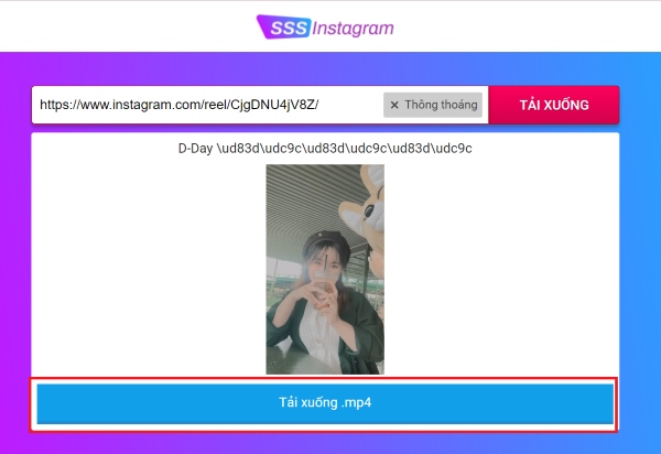 Bước 2: Truy cập vào trang web hoặc app sssinstagram > sau đó dán đường link vào thanh tìm kiếm. Công cụ sssinstagram sẽ giúp bạn xử lý hình ảnh, video và nó sẽ hiển thị đề xuất ngay bên dưới.