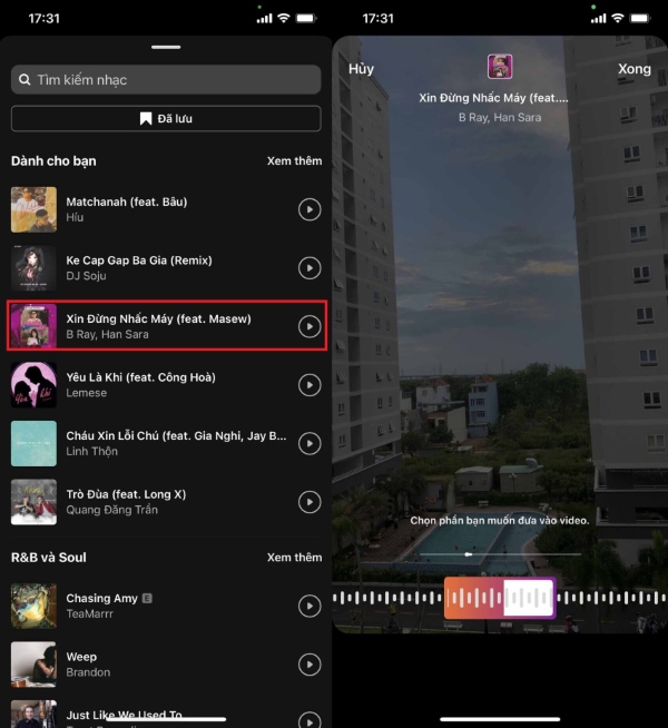 Ngoài ra bạn cũng có thể lưu lại bài hát mình muốn để dùng cho lần quay video sau bằng cách chọn vào biểu tượng thước phim ở giữa màn hình. Sau đó chọn vào âm thanh bạn muốn > nhấn chọn Lưu file âm thanh.