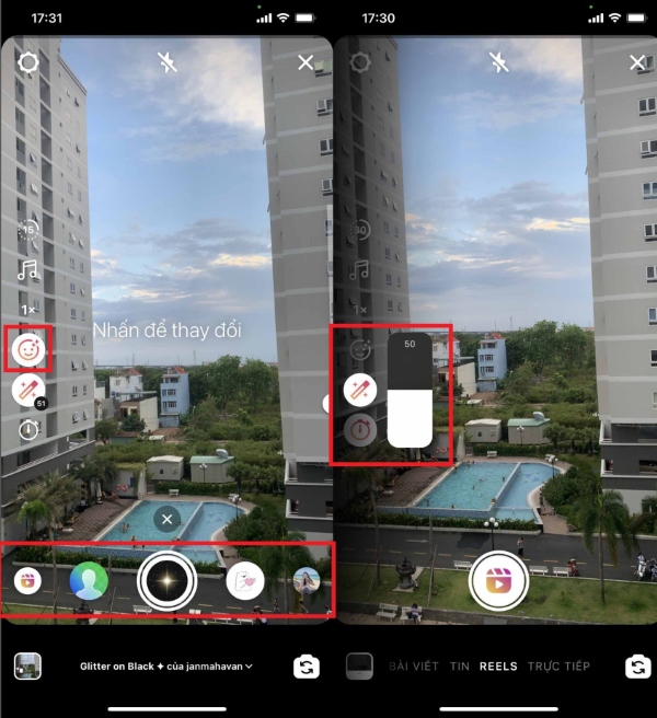 Bước 4: Tiếp theo, bạn có thể chèn hiệu ứng cho video Reels như Story Instagram thông thường > chọn vào biểu tượng cây bút để làm đẹp thêm cho hiệu ứng nếu bạn muốn.