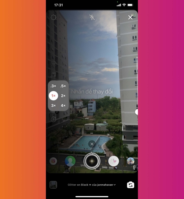 Ngoài ra, bạn cũng có thể tùy chọn quay video với tốc độ âm thanh: 1x, 2x, 3x, 4x, 5x. Sau khi đã tinh chỉnh hết các tùy chọn. Cuối cùng, bạn nhấn nút chính giữa để tiến hành quay video Reels.