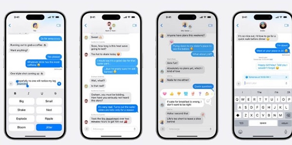 Ứng dụng Tin nhắn trên iOS 18 đã được cải tiến với hàng loạt tính năng thú vị như: Lên lịch gửi tin nhắn cho phép bạn cài đặt thời gian gửi tin nhắn theo ý muốn. Tạo hiệu ứng chữ cho từng từ khóa. Tapback cho phép thả biểu tượng cảm xúc tương tự như Zalo, Messenger. Định dạng tin nhắn với các tùy chọn in đậm, in nghiêng, gạch chân, gạch ngang.