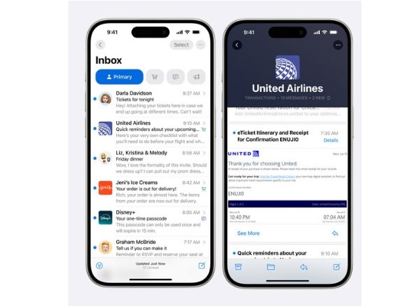 Giờ đây, Apple Mail trên iOS 18 cho phép bạn dễ dàng quản lý hộp thư nhờ tính năng phân loại email thông minh. Điều này sẽ giúp bạn sắp xếp thư rất thuận tiện mà không cần kết nối mạng internet. Đáng chú ý, ứng dụng sẽ tự chia email vào các mục như thư quan trọng, thư từ mạng xã hội, quảng cáo để bạn dễ dàng xem cái thư cần thiết.