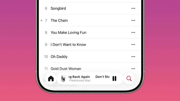 Trên iOS 26.1, Apple Music được cải tiến với cử chỉ vuốt ngang trên tiêu đề bài hát để chuyển nhanh sang bài kế tiếp hoặc quay lại bài trước, giúp thao tác điều khiển trở nên tự nhiên và tiện lợi hơn.