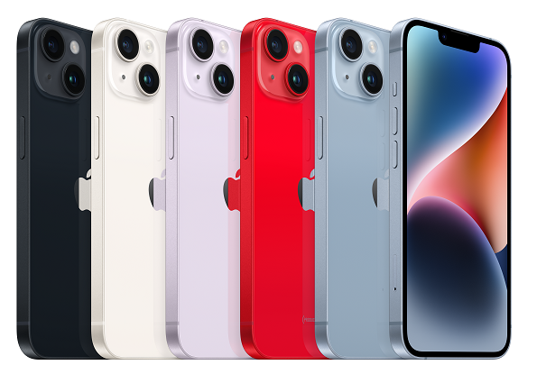 - iPhone 14: Đen, trắng, xanh dương, đỏ, tím