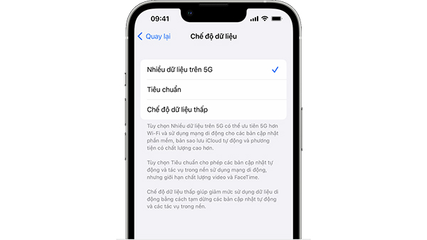 Có 3 chế độ dữ liệu 5G trên iPhone 15 phù hợp với từng nhu cầu cụ thể: