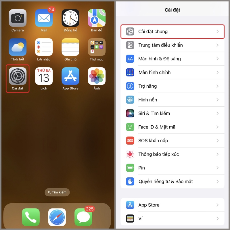 Bước 1. Bạn thực hiện truy cập vào ứng dụng Cài đặt, chọn vào mục Cài đặt chung.