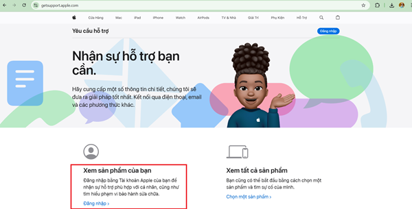 – Bước 1: Truy cập website https://getsupport.apple.com/.