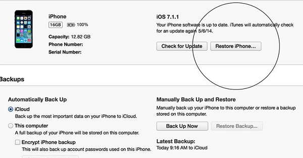 Bước 4:  Lúc này trên máy tính, iTunes sẽ hiện lên thông báo Restore iPhone (Khôi phục iPhone), bạn hãy nhấn chọn Restore iPhone.