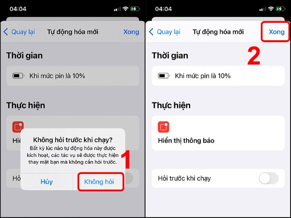 Tắt tùy chọn “Hỏi trước khi chạy” (Ask Before Running) > Chọn Không hỏi (Don’t Ask) > Nhấn Xong (Done) để hoàn tất.