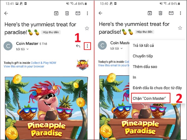 Bước 2: Chọn vào dấu ba chấm bên phải của tên địa chỉ email > Chọn vào mục Chặn “Tên địa chỉ email”.