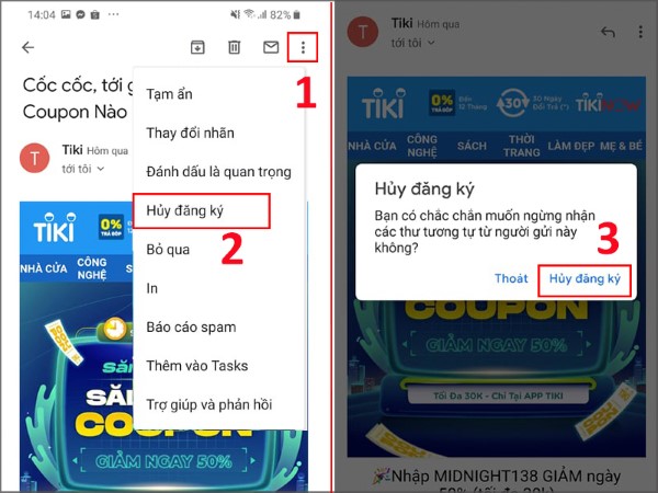Nếu bạn đã đăng ký trên một trang web và nhận được rất nhiều email quảng cáo hoặc bản tin, thì bạn có thể sử dụng đường liên kết hủy đăng ký để ngừng nhận các email có chứa nội dung này như sau: