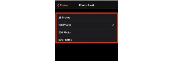 Tất cả những gì bạn cần làm là chọn bất kỳ một tùy chọn nào trong danh sách để quản lý bộ nhớ tốt hơn. Chúng tôi khuyên bạn nên chọn tùy chọn 25 ảnh để giải phóng dung lượng lưu trữ ảnh trên Apple Watch để tránh lộn xộn.